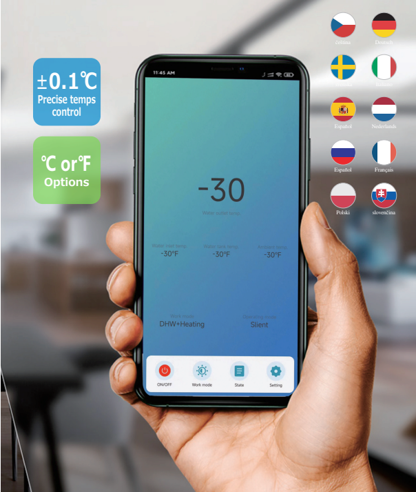 Das 5 Zoll große LCD-Touchscreen-Bedienfeld und die Wi-Fi-App „Smart Life“ unterstützen Optionen in Landessprache und Englisch. Dieses benutzerfreundliche Design reduziert die fremdsprachliche Legasthenie der Benutzer und erleichtert es auch den Händlern, ihren Markt lokal zu erweitern.
