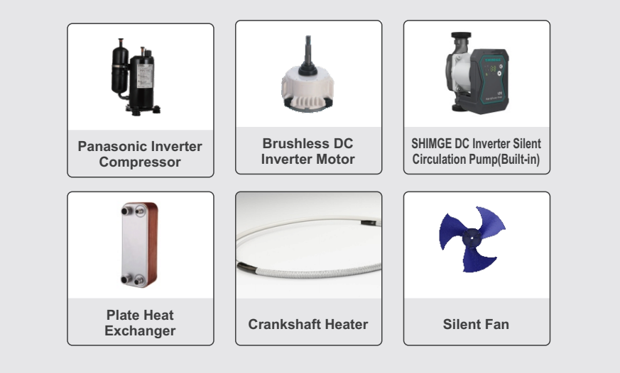DC-Inverter-Panasonic-Kompressor, stufenloser DC-InverterLüftermotor, DC-Inverter-Wasserzirkulationswasserpumpe